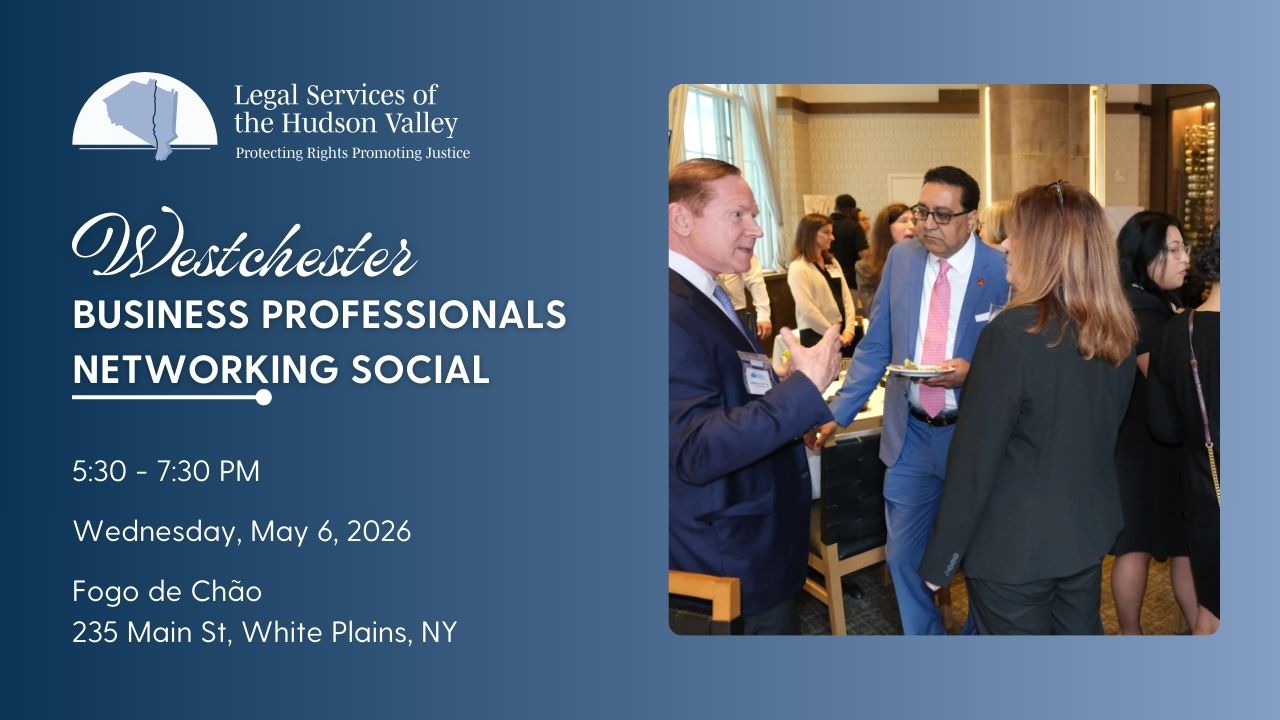 Join Legal Services of the Hudson Valley (LSHV) for our 3rd Annual Business Professionals Networking Social on Wednesday, May 6, 5:30–7:30 PM at Fogo de Chão in White Plains, NY.